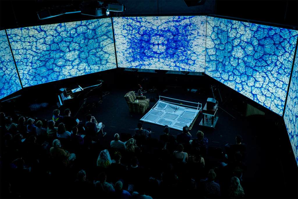 While para//e/s does not explore these cosmological planes of existence or circles of hell, para//e/s does explore five potential, imaginative iterations of parallel universes: a world made of mirrors; a world without gravity; a world where humankind consists of alternate physical forms; a world where humans are extinct; and a world where motion is visually manifested through overwhelming color.