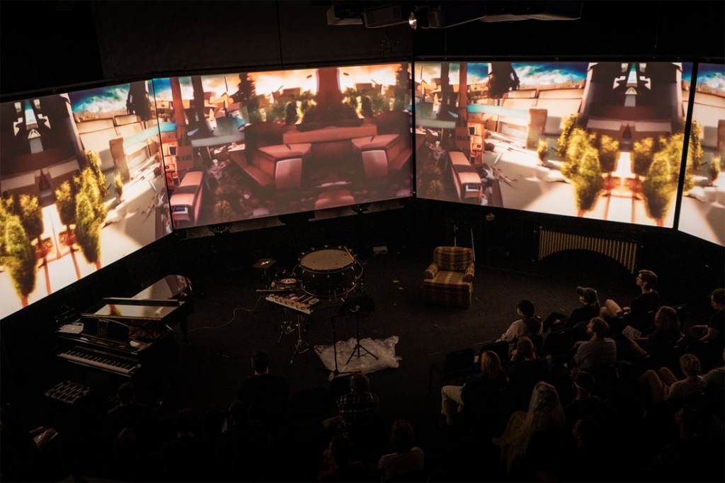 When approaching the fixed media composition for para//e/s, Insun Choi and Samuel Montgomery co-wrote a leitmotif that develops throughout each of the five parallel universes, creating a sense of déjà vu—a phenomenon that Michio Kaku describes as a potential evidence for a multiverse. Drawing inspiration from Rene Magritte, Salvador Dali, Cinta Vidal, and Josh Keyes, Jae-Eun utilized personal as well as online image and video archives to generate imagery for five distinct, imaginative universes. Jae-Eun further used After Effects, Polycam, and Sketch Meta Demo Lab to create additional imagery.